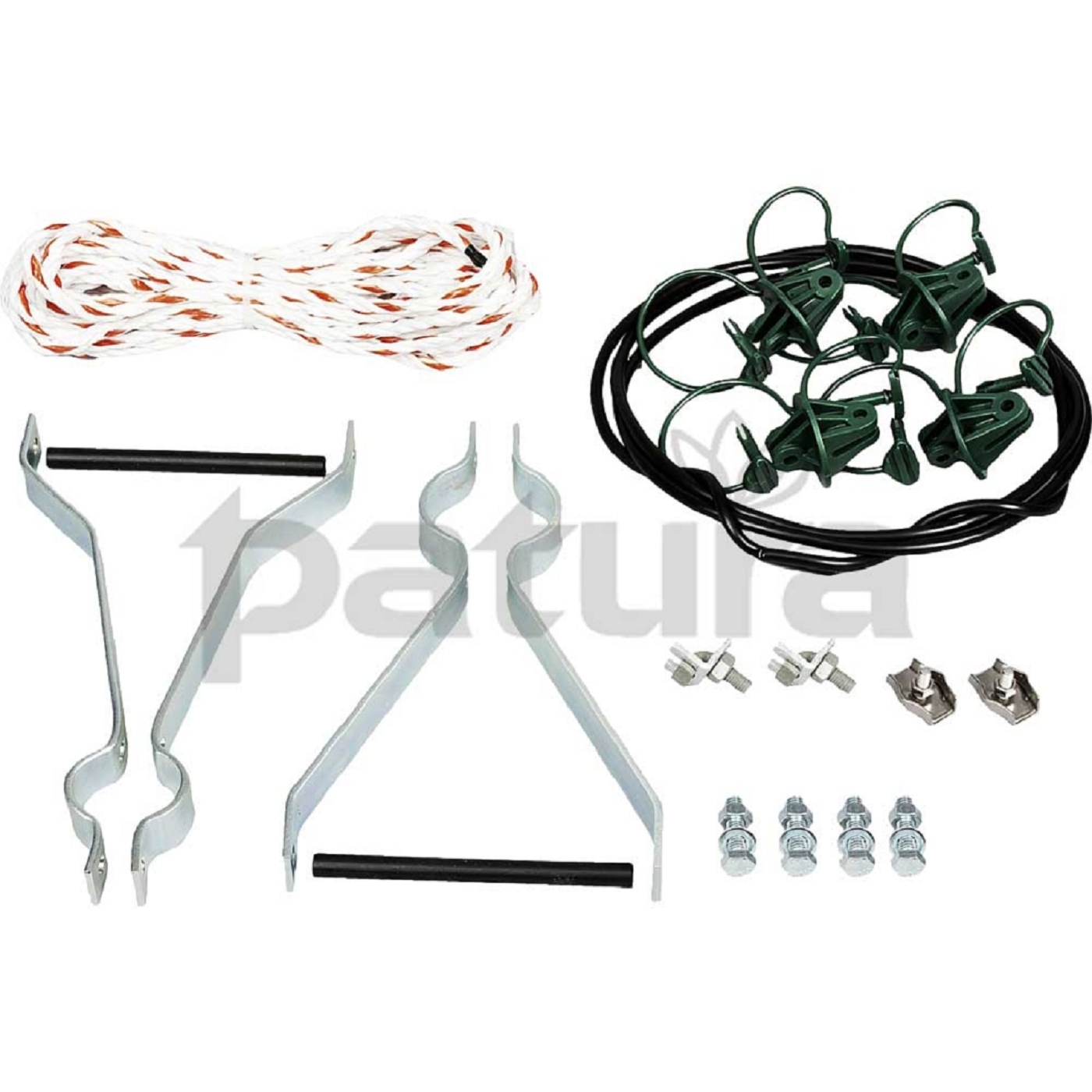 Das Torset ist ideal zum Ziehen eines elektrifizierten Seils beiderseits vor verstellbaren Stahl-Weidezauntoren. inkl. aller Befestigungsteile (mit Elektor-Seil)