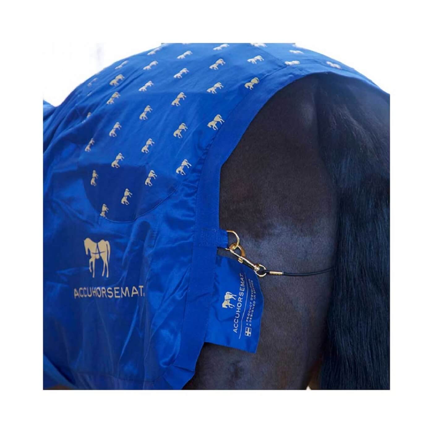 Das Modell „Accuhorsemat Original“ besteht aus einem robusten Nylonmaterial mit einer glänzenden Außenseite, das perfekt für kältere Klimazonen oder die Wintersaison geeignet ist. Der Frontverschluss ermöglicht eine individuelle Einstellung und ein sicheres sowie schnelles Ausziehen der Decke.
