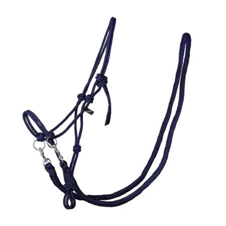 Dieses Knotenhalfter ist mit 2 Metallringen ausgestattet und wird mit einem dicken Seil, mit jeweils einem Clip am Ende, geliefert.