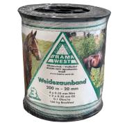 Mit dem bewährten Brama West Weidezaunband sichern sie zuverlässig ihre Pferdeweide bis zu einer Zaunlänge von 200m. Das 20mm breite Weidezaunband ist UV-beständig, sehr reißfest und besitzt 4 Nirostaleiter.