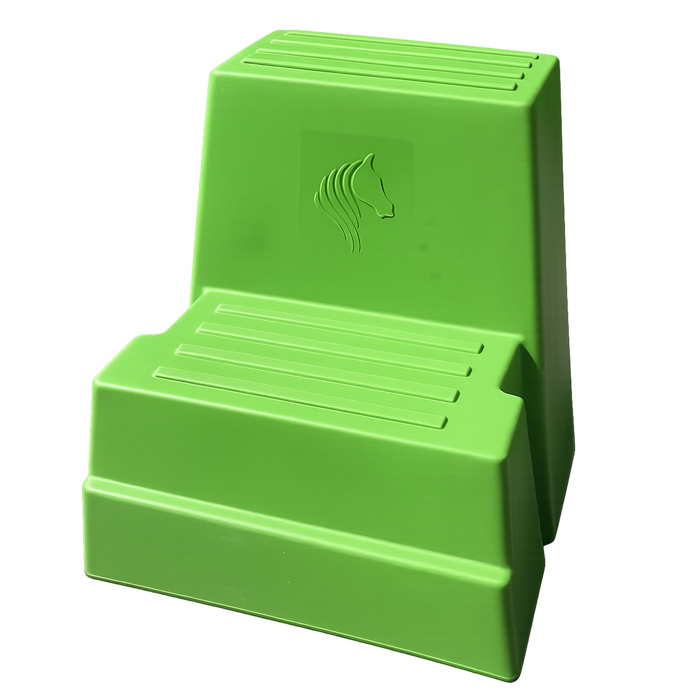 Der 2-stufige Montierblock ist vielseitig einsetzbar: Neben dem Aufsteigen aufs Pferd eignet er sich perfekt für Stallarbeiten wie Putzen, Flechten oder das Erreichen höher gelegener Bereiche.