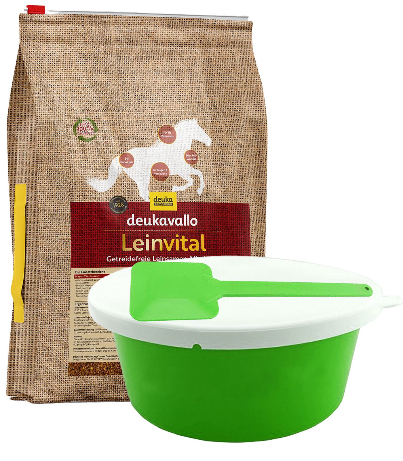 Futterset Pferd – deukavallo Leinvital + 5L Futterschale mit Mashlöffel