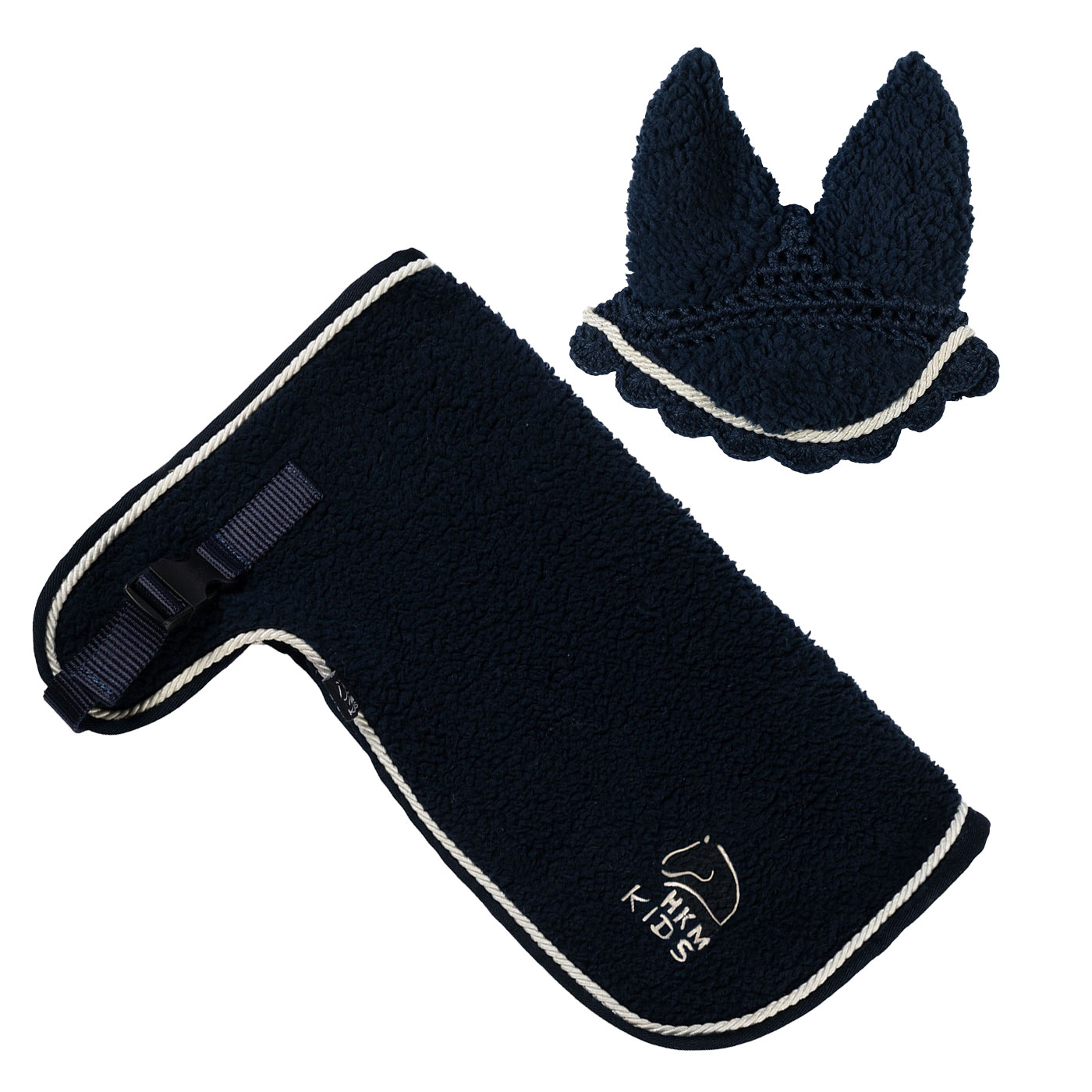 Das Teddy Set von HKM ist die perfekte Ausstattung für alle Hobby-Horsing-Fans, die Wert auf einen besonders niedlichen und hochwertigen Look legen. Das Set besteht aus einer Fliegenhaube und einem passenden Halsteil/Decke im kuscheligen Teddy-Design – optimal abgestimmt für dein Steckenpferd.