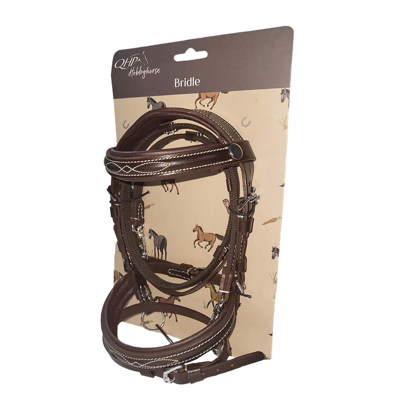 Verleihe deinem QHP oder HKM Hobby Horse mit dieser stilvollen Trense mit luxuriösen weißen Nähten eine elegante Ausstrahlung!