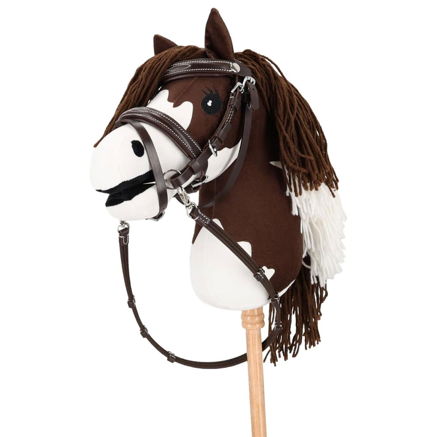 Die Trense überzeugt durch ihr klassisches Design mit weißen Ziernähten, die jedem Hobby Horse einen hochwertigen, edlen Look verleihen. Hergestellt aus strapazierfähigem PVC-Kunstleder mit robusten Zink-Beschlägen, garantiert sie Langlebigkeit, leichte Pflege und eine sichere Handhabung.