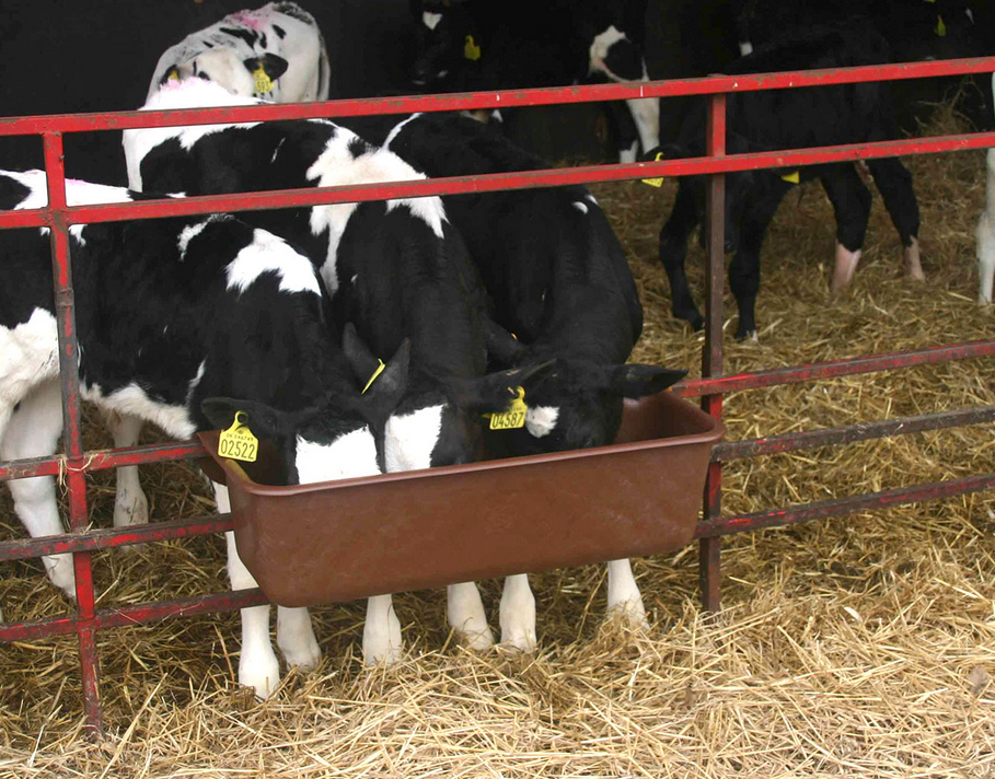 Der Trog hat eine Füllkapazität von 32 Litern und eine Länge von 80 cm, und ist bestens geeignet für Milchaustauscher, Kraftfutter und Wasser.