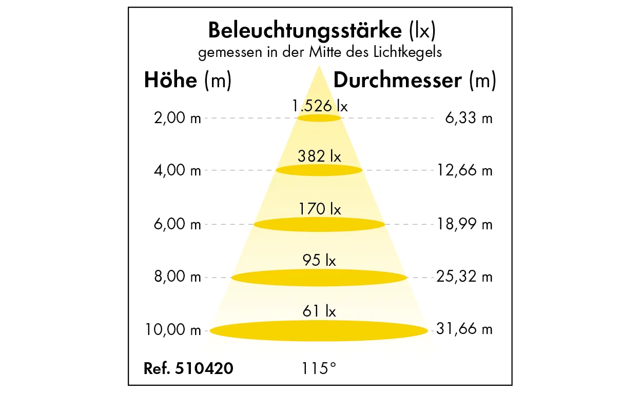 Das Gerät kombiniert hohe Lichtleistung mit robuster Bauweise und Flexibilität durch Dimmfunktionen. Dank der IP65-Zertifizierung und der Bauweise ist es bestens geeignet für den Einsatz auch unter anspruchsvollen Witterungsbedingungen oder in Außenbereichen.