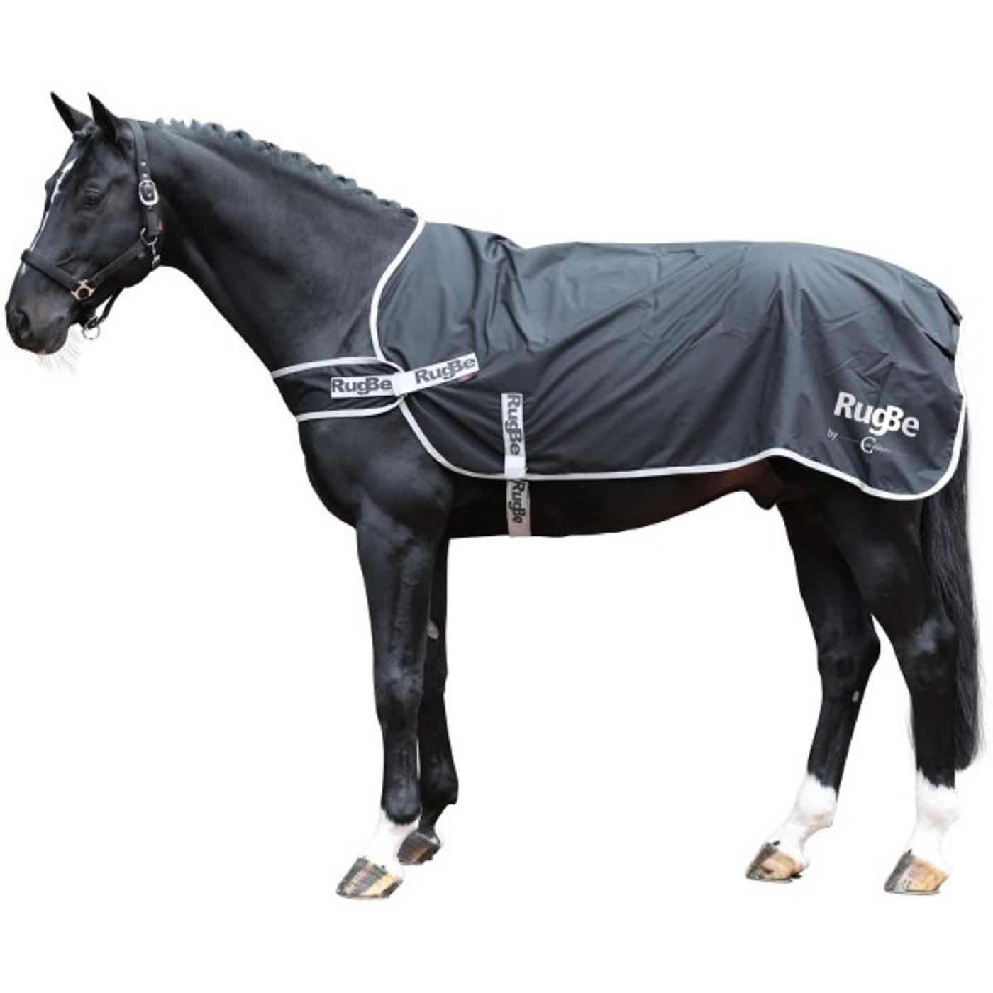 Die RugBe Führanlagen- und Spazierdecke besteht aus hochwertiges, reißfestes 600 Denier Polyester. Sie hält das Pferd außen trocken und sorgt gleichzeitig für Temperaturausgleich (stark wasserabweisend 3.000 mm, atmungsaktiv 3.000 g/m²/24 h). Die Decke besitzt einen Schweifriemen und Bauch- und Brustgurt mit Elastikeinsatz.