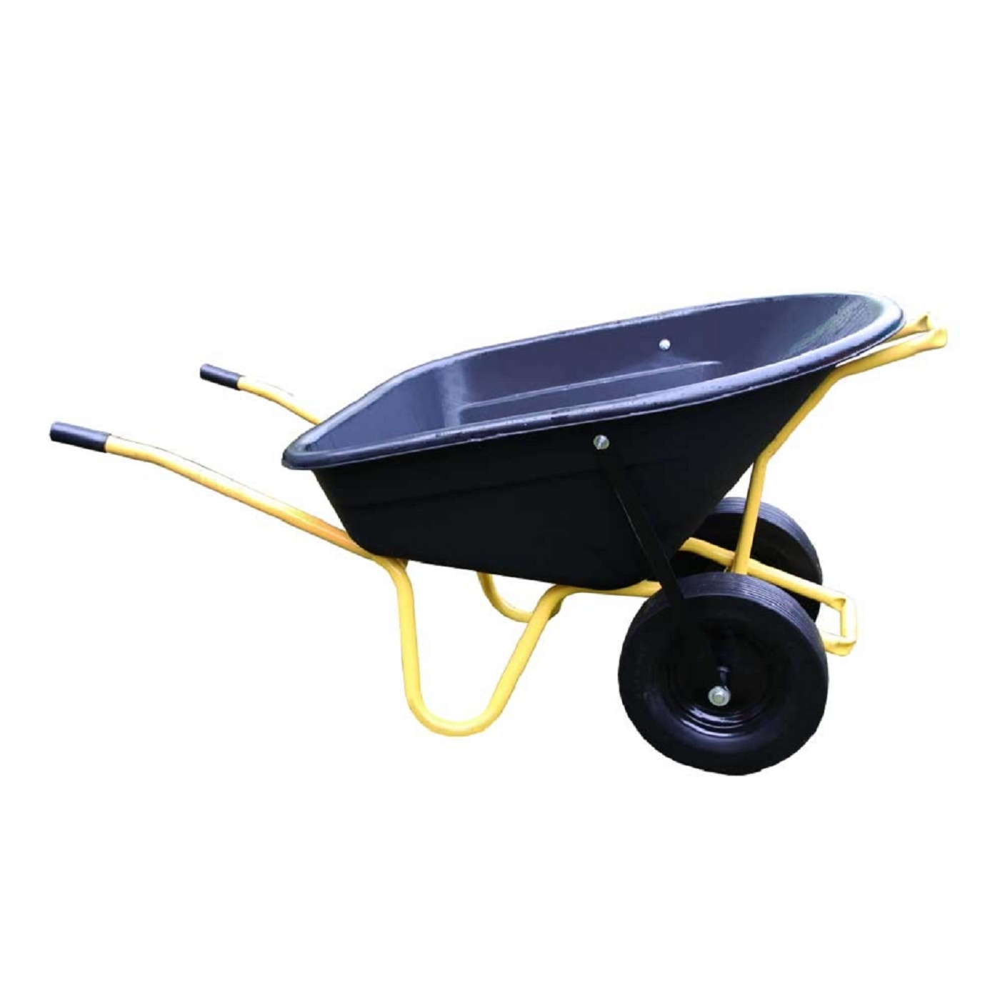 Die Schubkarre Twin besteht aus einer 160 Liter fassenden schlagfesten HDPE Tiefbettmulde und einem einteiligem, geschweißtem und pulverbeschichtetem 32 mm starkem Rahmen mit Kippbügel. Die max. Tragkarft beträgt 220 kg. Die Bereifung besteht aus zwei pannensicheren 3.50-8 Rädern mit Gleitlager und einer extra breiten Lauffläche.