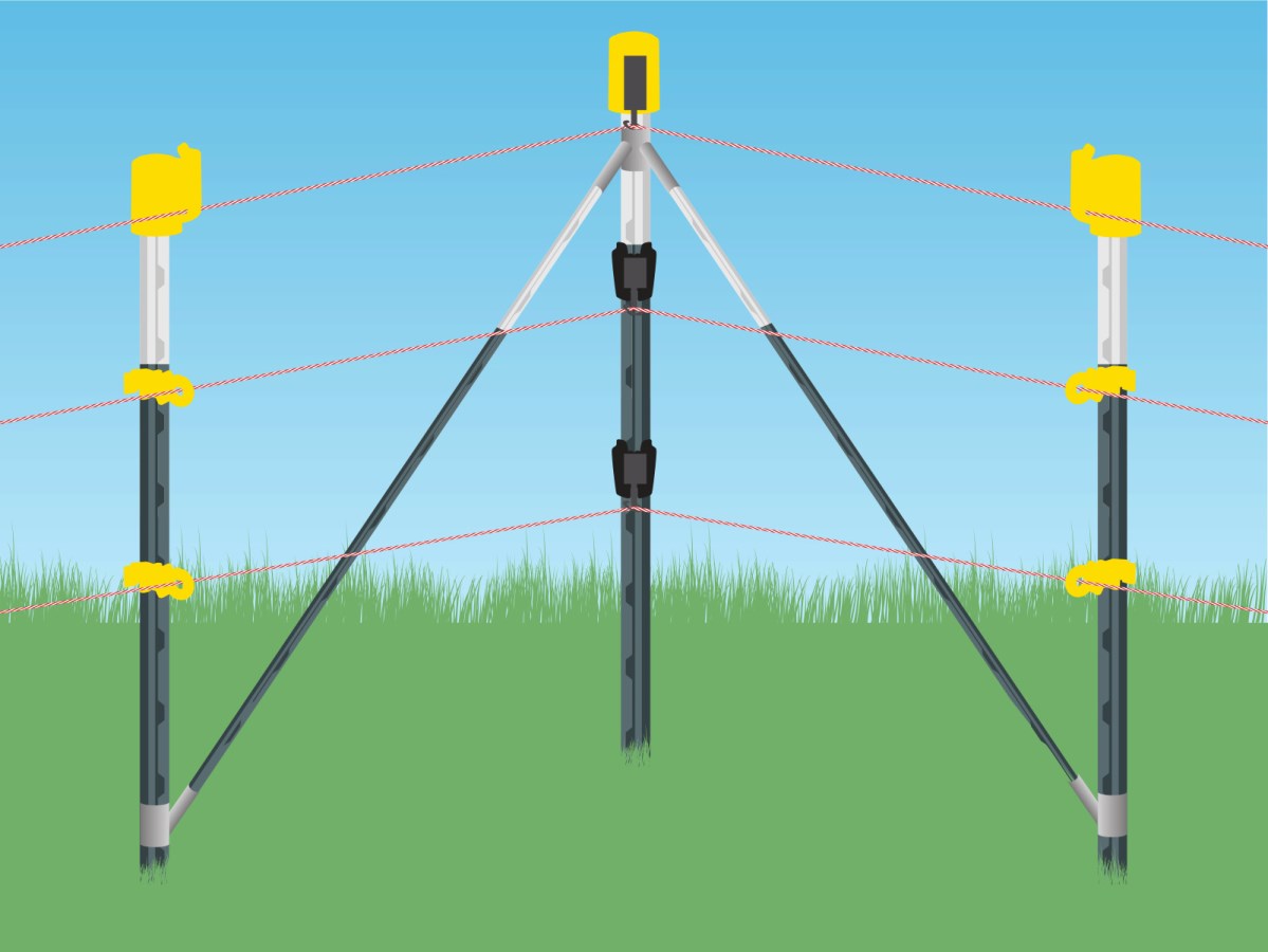 Das Ecklösungs‑Set für T‑Post-Systeme bietet Ihnen eine flexible und stabile Lösung zur Realisierung von Eckpunkten in Ihrem Weide‑ oder Drahtzaun – ganz ohne komplizierte Anpassungen. Im Set enthalten sind eine universelle Eckhalterung sowie vier Halterungen für Diagonalstreben inklusive Befestigungsschrauben und Schutzkappen. Bei der Installation wird der Eckpfahl etwa 40–50 cm in das Erdreich getrieben, im Abstand von ca. 1,50 m folgen Eck‑ bzw. Streckenpfähle. Anschließend montieren Sie die Halterungen am Eckpfahl und setzen die diagonalen Stützpfähle in die Hülsen ein, so entsteht eine solide Eckverbindung mit hoher Zug‑ und Seitenstabilität – ideal für Pferdeweiden, Rinder‑gehalten oder Hobbyfarmen.