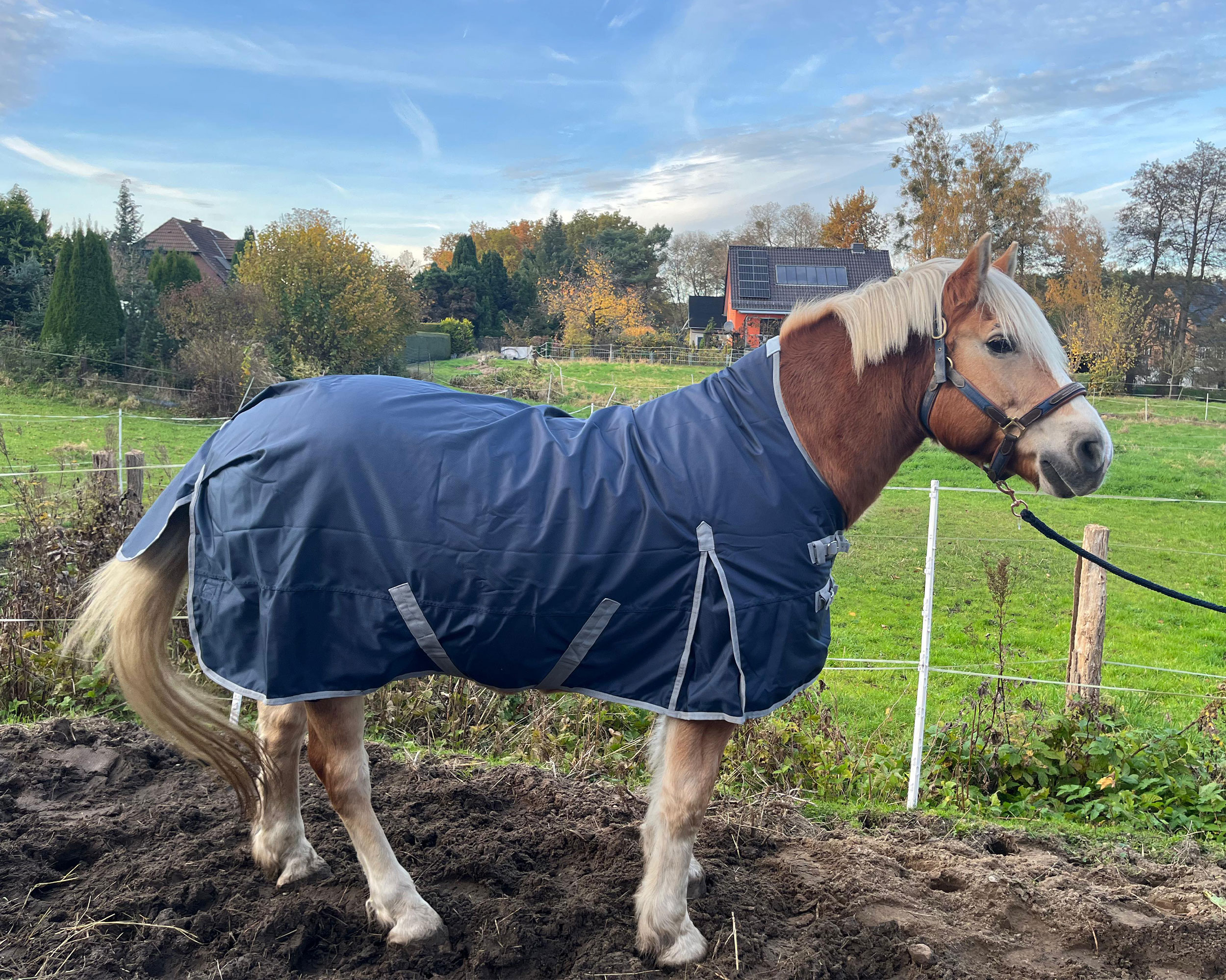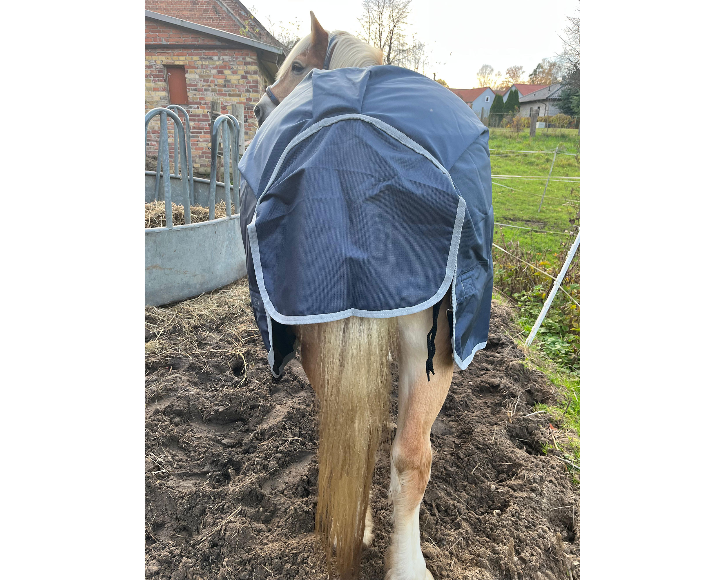 Die Winterdecke 1680D High Neck in Navy-Grau ist die perfekte Kombination aus Funktionalität, Komfort und Stil. Sie schützt dein Pferd zuverlässig bei Wind, Regen und Kälte – und sieht dabei auch noch hervorragend aus.